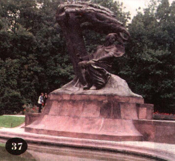 В парке стоит памятник Шопену (скульптор В. Шимановский). Композитор изображен